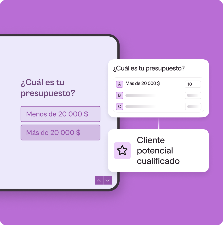 Usa Typeform para captar, segmentar y puntuar clientes potenciales al instante. Activa fácilmente correos electrónicos de seguimiento o deja programar una llamada a los clientes potenciales cualificados.