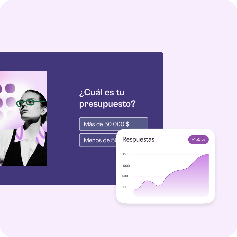 Es por ello que los formularios de captura de clientes potenciales de Typeform se han diseñado para que parezcan más una conversación que un cuestionario. Los clientes potenciales completan los formularios de generación de leads de Typeform porque son fáciles, atractivos y cercanos, no densos o confusos.