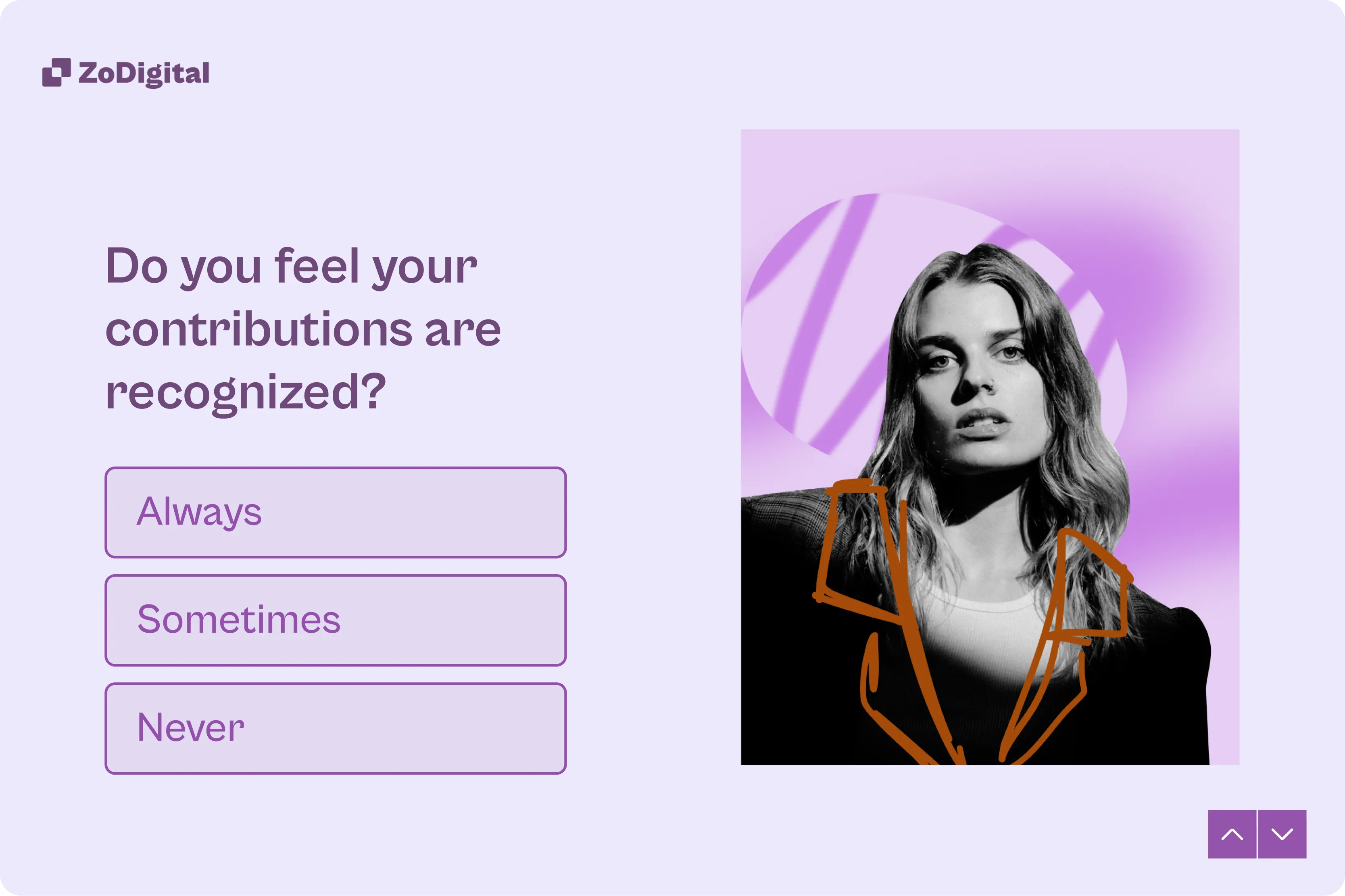 Our straightforward and conversational design gives employees the space to share honest feedback. Logic routes them through the survey based on their role, team, or experience, so they only get relevant questions, increasing the relevancy of the feedback.