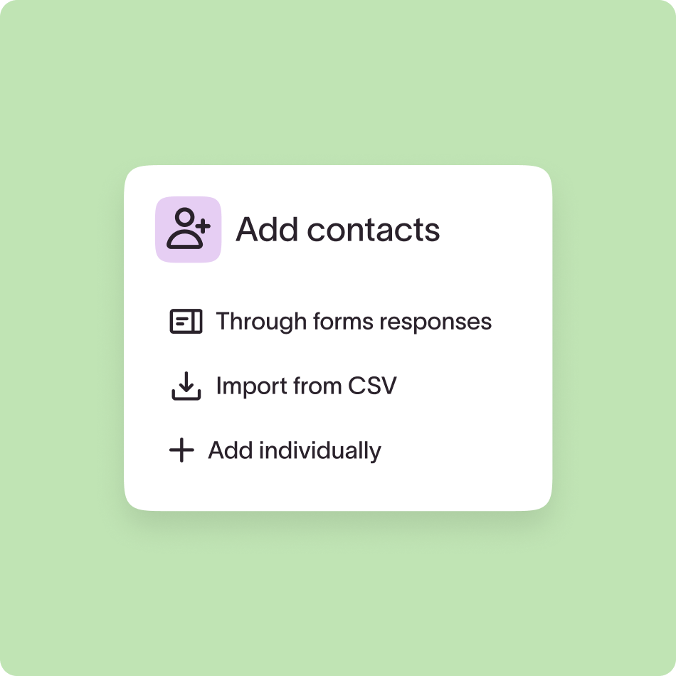 Gestiona y segmenta fácilmente a tus clientes para mantener su interés después con seguimientos automatizados. Todo en Typeform.