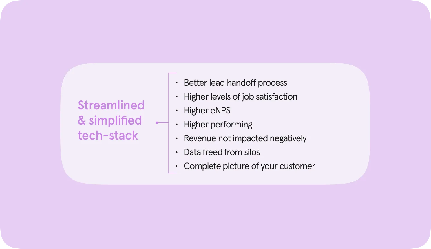 Silos also slow everything down. For example, a lead might have to go through multiple checks—or worse, get handed back and forth—because teams aren’t synced.