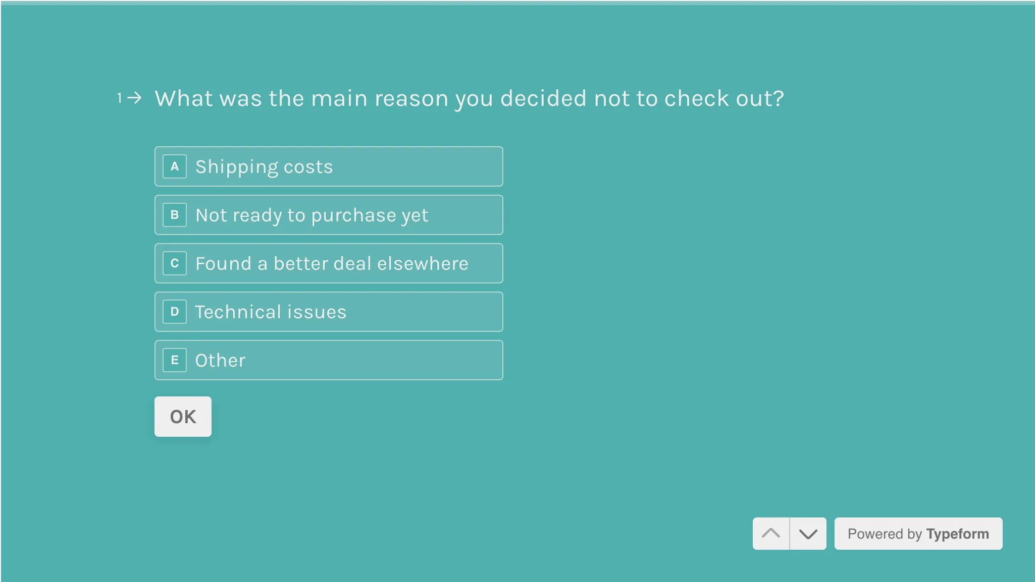 📈 Example: A small e-commerce brand wanted to know why people abandoned their carts. They sent a two-question Typeform survey asking what stopped them.