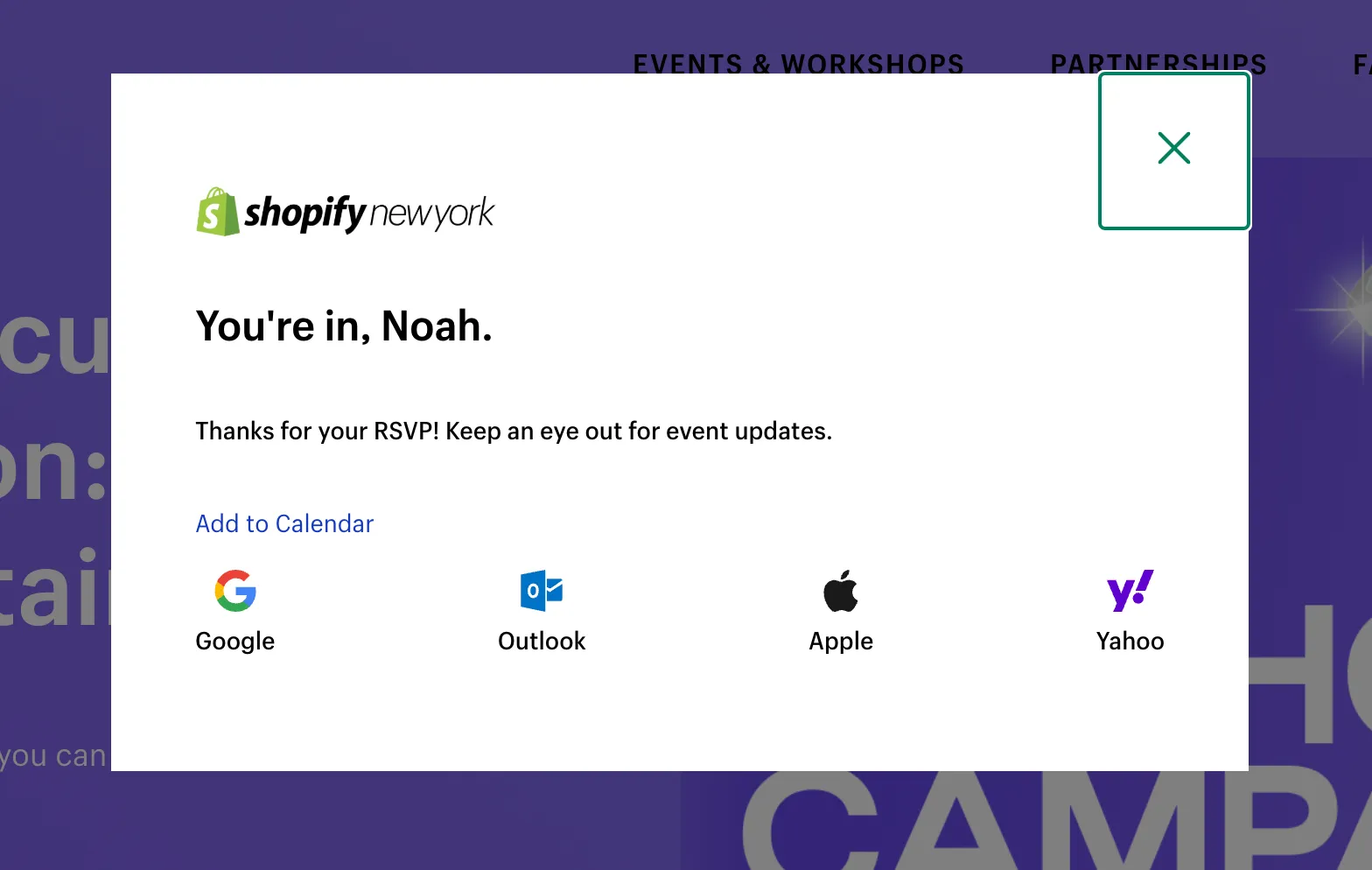 The same goes for events. Take the Shopify example from before. E-commerce owners likely trust Shopify because it's a reliable and well-loved e-commerce platform.