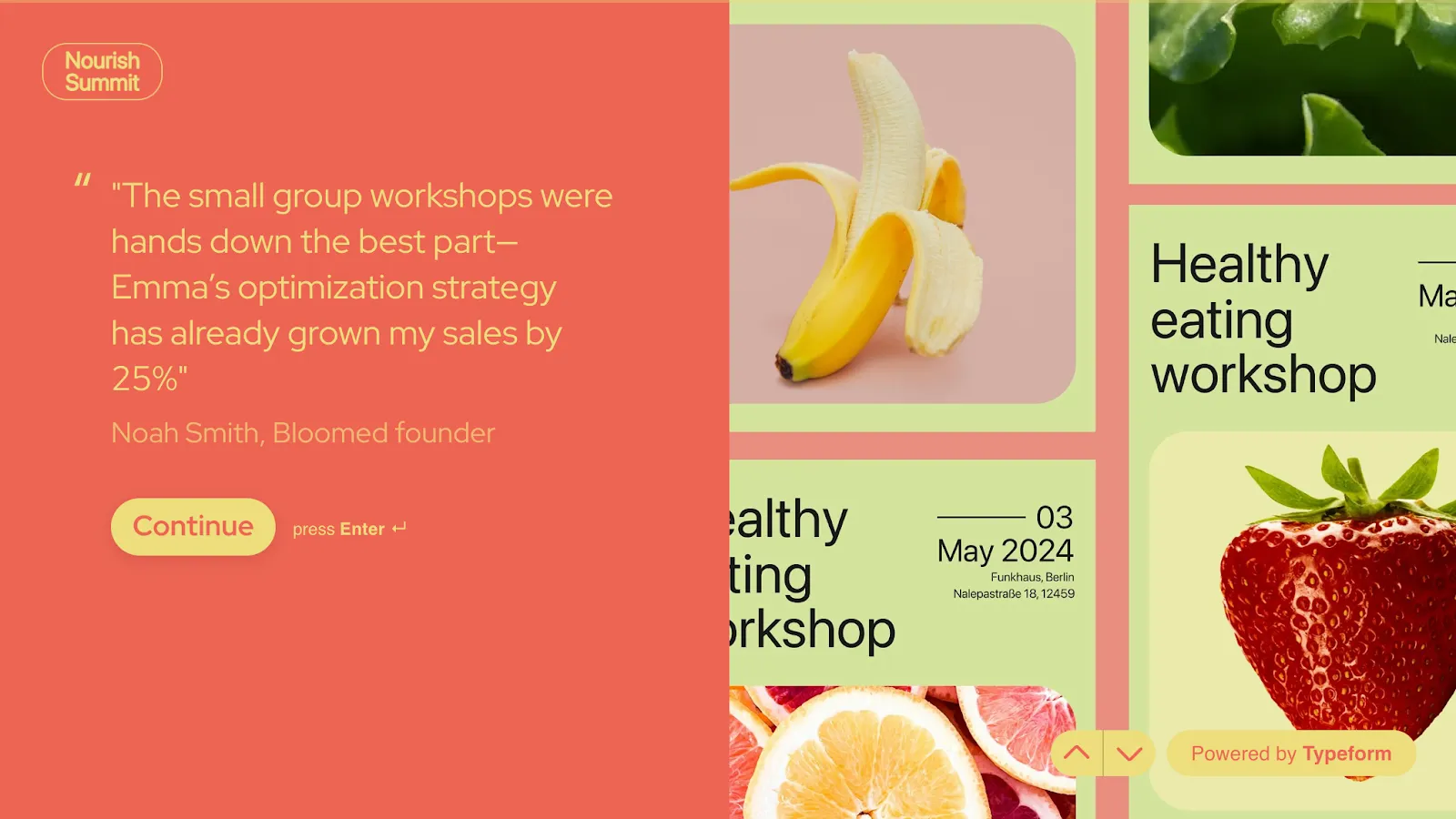 Typeform makes it truly effortless to create event sign-up forms that convert. With customizable eye-catching and responsive designs and countless integrations to make sign-up smooth and seamless, Typeform is a no-brainer.