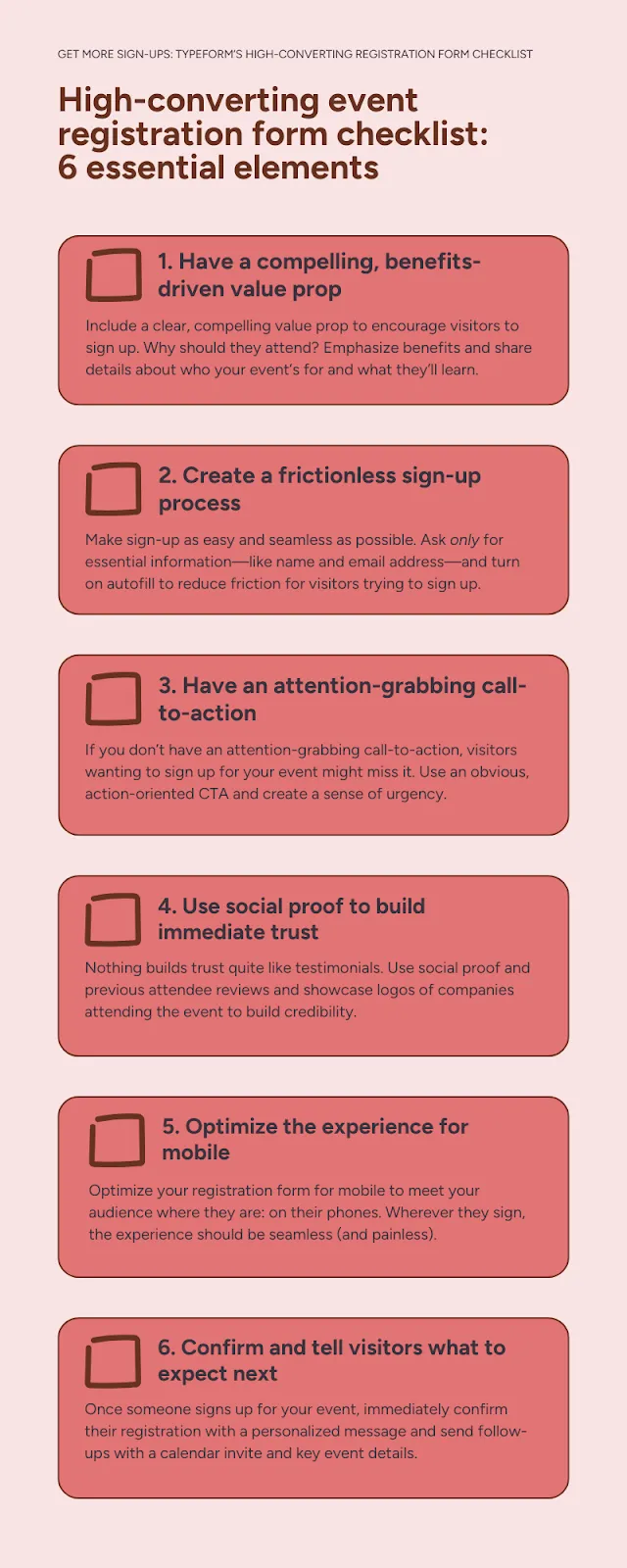 Start with our high-converting registration form checklist and watch sign-ups skyrocket.