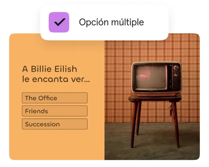 Crear un cuestionario es rápido y sencillo gracias a nuestro editor de arrastrar y soltar fácil de usar. Deja que las herramientas impulsadas por IA te ayuden a crear preguntas entretenidas. Luego, compártelas al instante con un solo clic, incrústalas en tu sitio web o publícalas en las redes sociales.