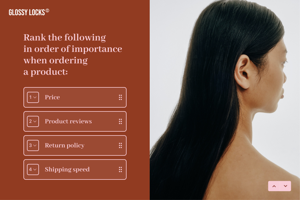 Before buying something, many of us consider the price, reviews, and the return policy. Your customers likely do, too. Asking a ranking question about the factors uncovers what drives purchase decisions and customer psychology.
