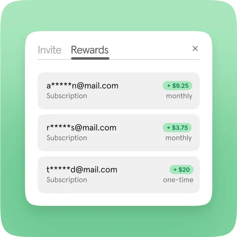 You can receive earnings via Paypal or Venmo. View and manage them any time on the Rewards tab.