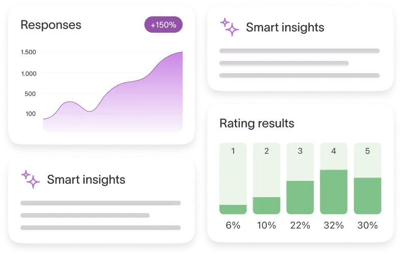- Smart Insights to summarize findings, generate charts, and uncover key themes from open-ended responses in minutes.