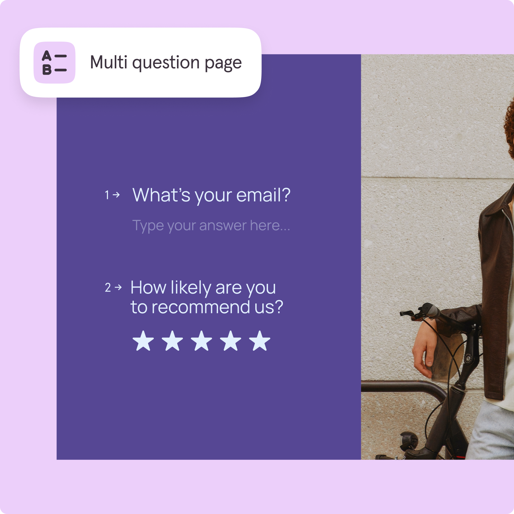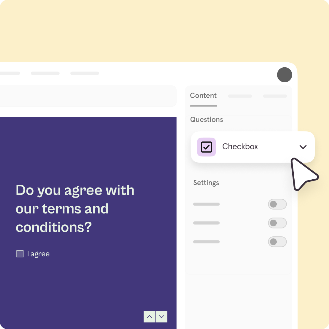 Create interactive quizzes that engage and inform. Perfect for training, lead qualification, or e-learning—get instant feedback with correct/incorrect answer tracking that keep respondents engaged.