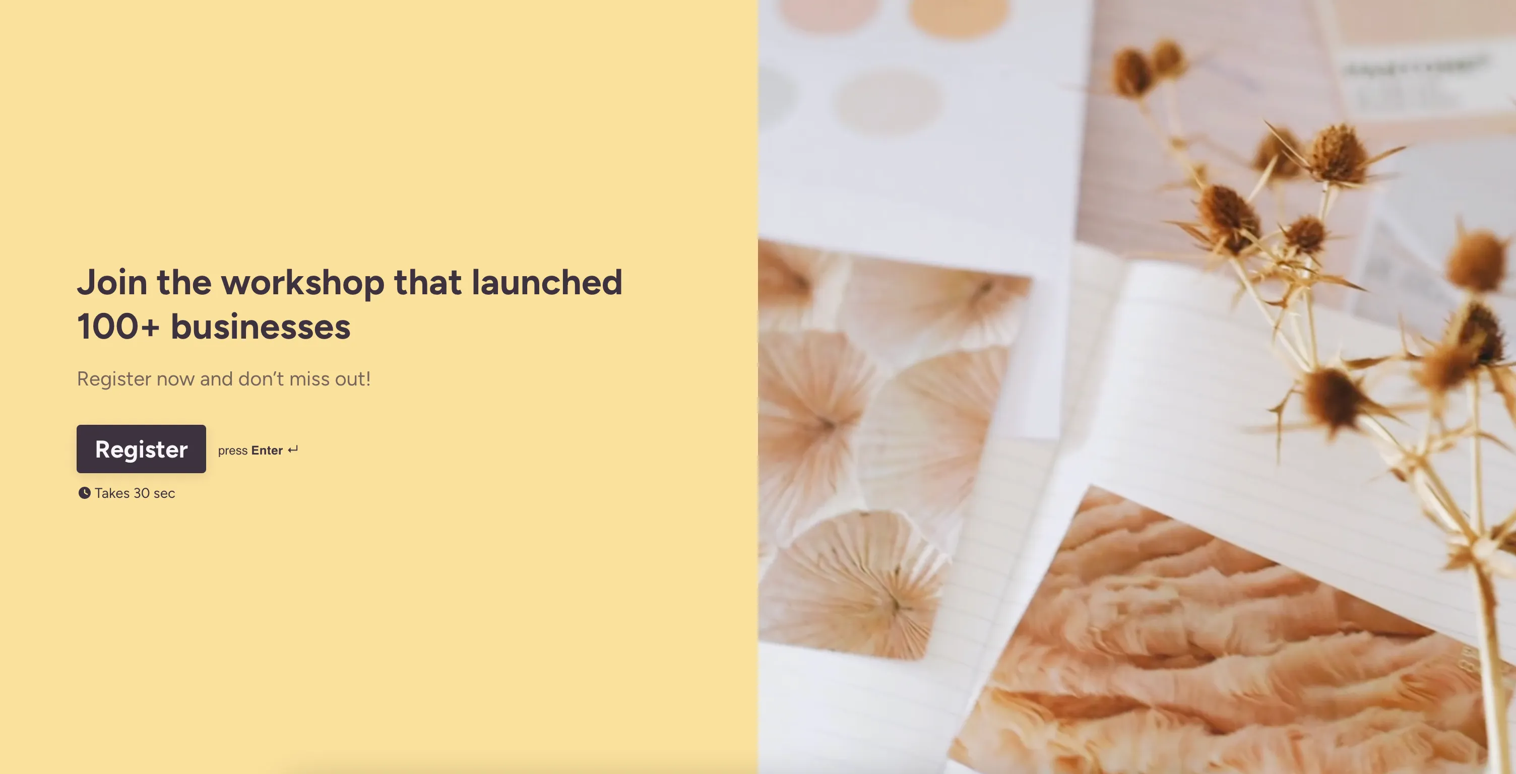 - Sign-up forms use warm and inviting branding and clear messaging to highlight the event's value prop.