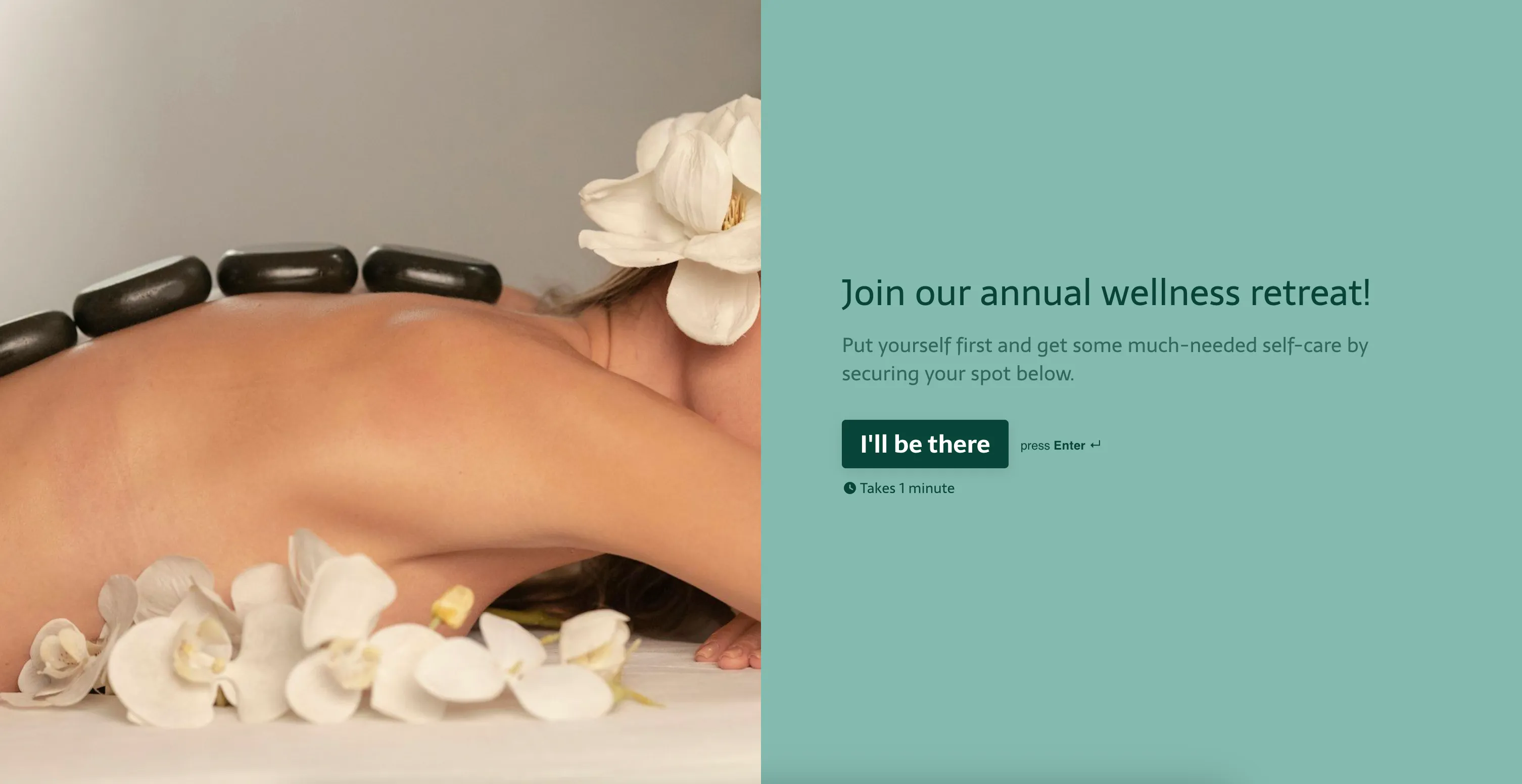 With a conversational flow, eye-catching designs, and a truly registrant-first experience, Typeform makes the sign-up process less of a process and more of an exciting experience for visitors. Try it out—for free.